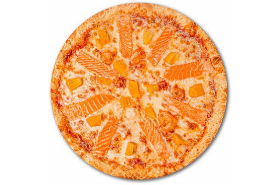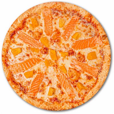 Состав: Лосось, ананасы, сыр моцарелла, сыр пармезан, соус Пицца, тесто.