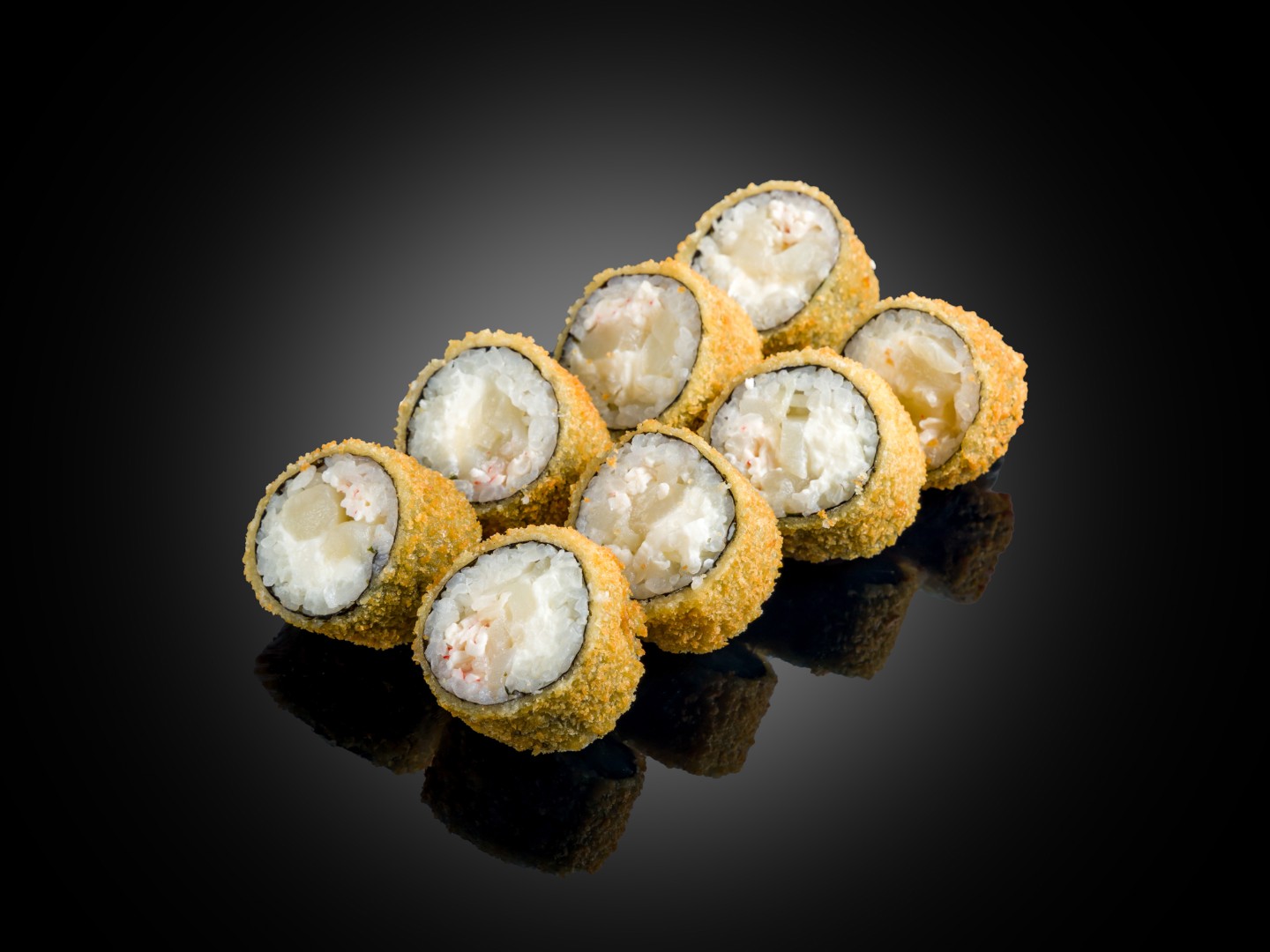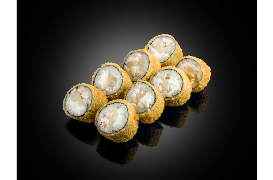 Гребешок, сыр сливочный, крабовый замес, рис, нори, смес темпурная, сухари панировочная