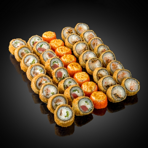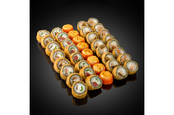 40 штук, Состав - Калифорния Хот, Темпура с Креветками, Темпура с лососем, Темпура с Угрём, Темпура с Крабом