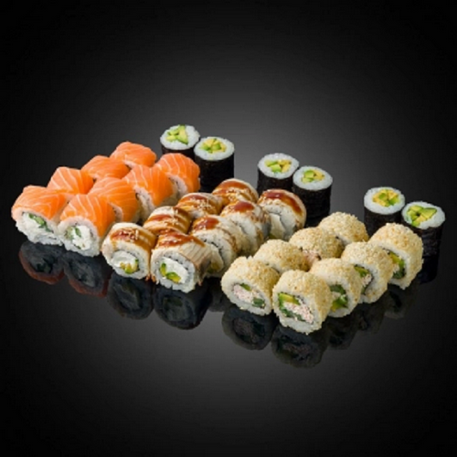 Состав: Филадельфия в угре, Филадельфия классическая, калифорния в кунжуте, авокадо мини.